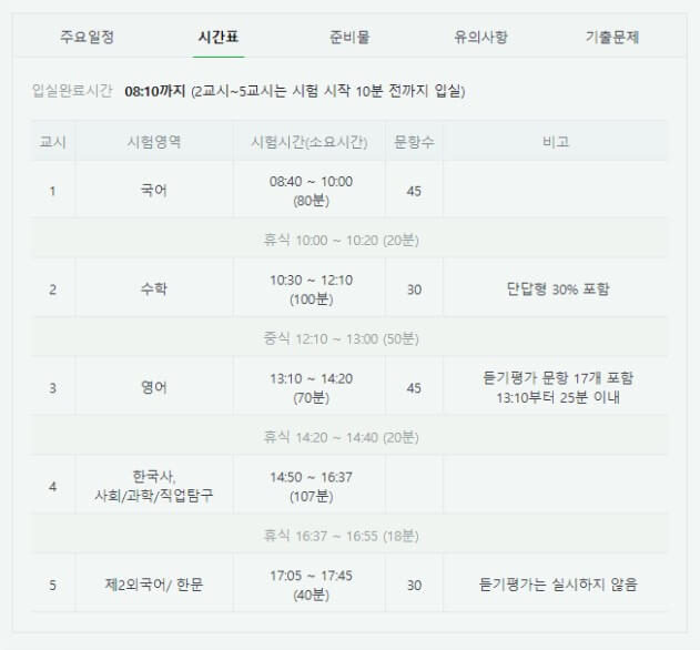시험 시간 관리는 수능에서 매우 중요하다. 시험장 내에는 시계가 없을 수도 있으므로, 수험생 개인이 아날로그 시계를 준비하는 것이 좋다. 전자식 시계나 소리가 나는 시계는 사용할 수 없으므로, 반드시 소리나 알람 기능이 없는 시계를 선택해야 한다. 시계를 통해 시간 관리를 잘하면 각 과목별 시간을 효율적으로 활용할 수 있다.